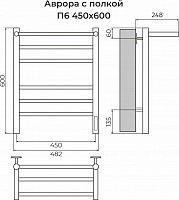 Аврора с/п П6 450х600 электро КС 9003 матовый ( new встроен диммер) Полотенцесушитель TERMINUS
